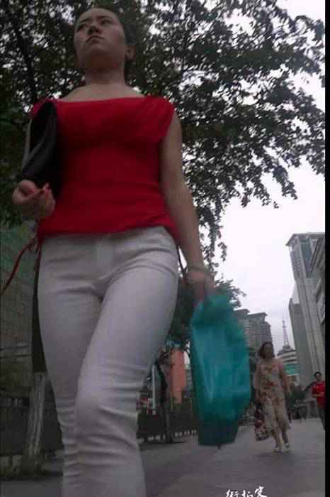 街拍视频00033紧身裤把少妇臀部勒得很紧再配上红