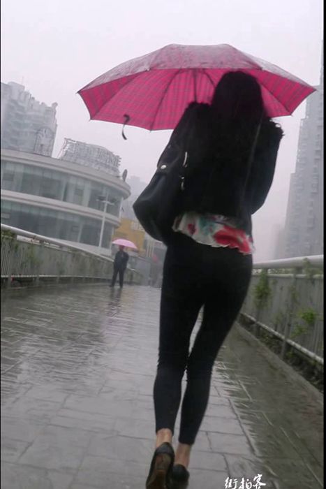 [街拍客视频]jx0055 下雨天跟拍紧身裤美高跟少妇